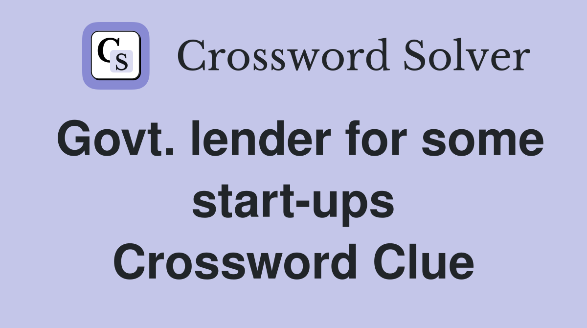 Govt lender for some start ups Crossword Clue Answers Crossword Solver