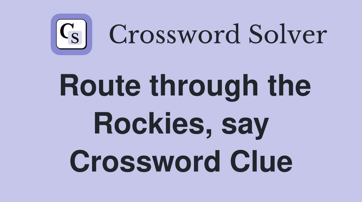 Route through the Rockies say Crossword Clue Answers Crossword Solver