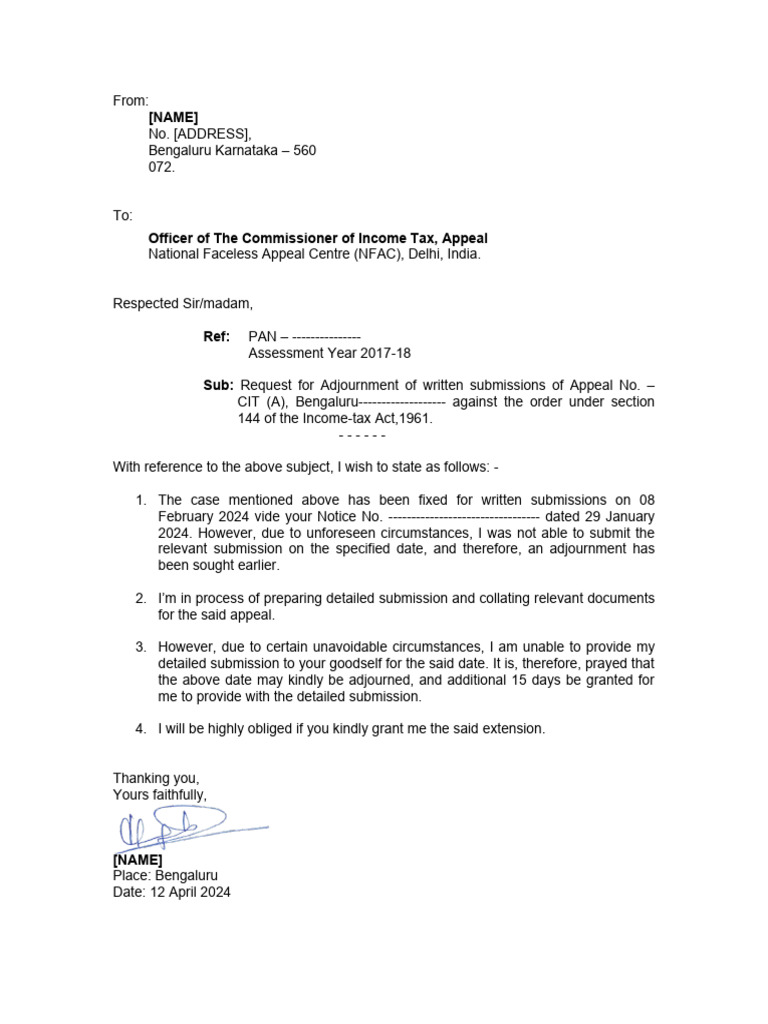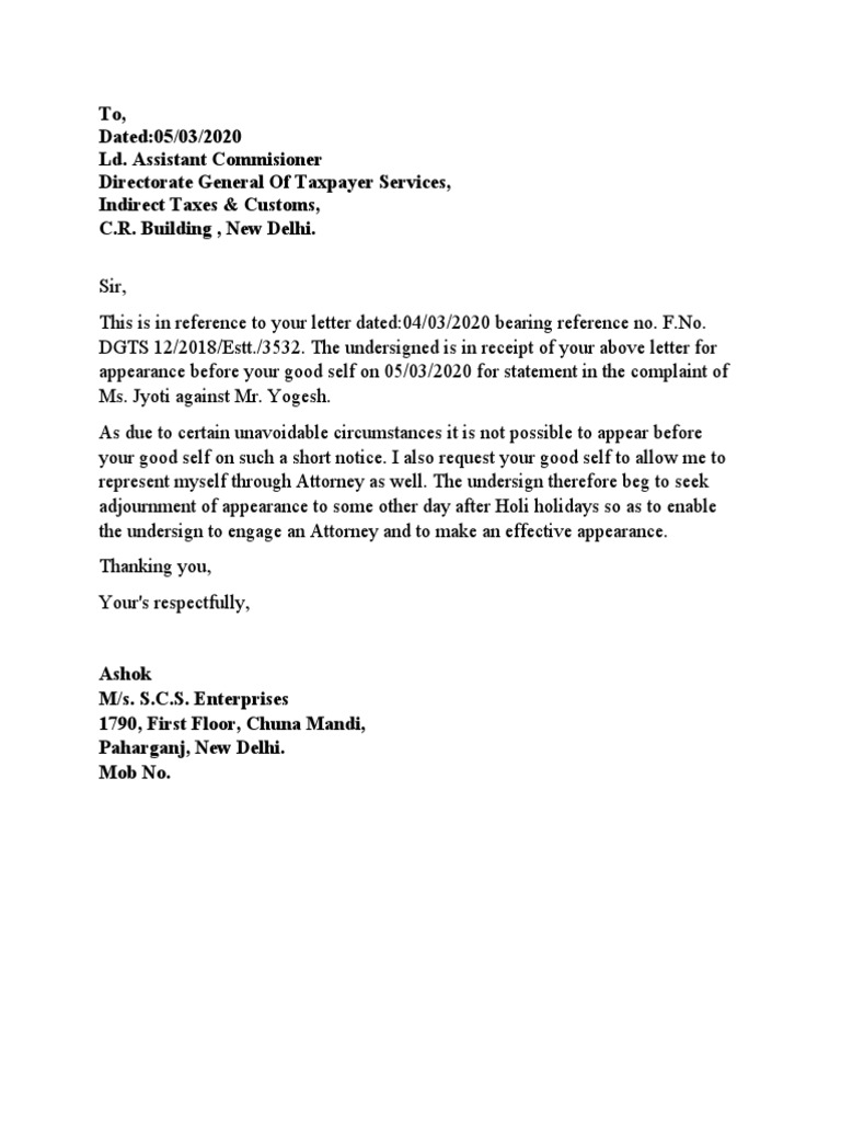 Adjournment Letter PDF