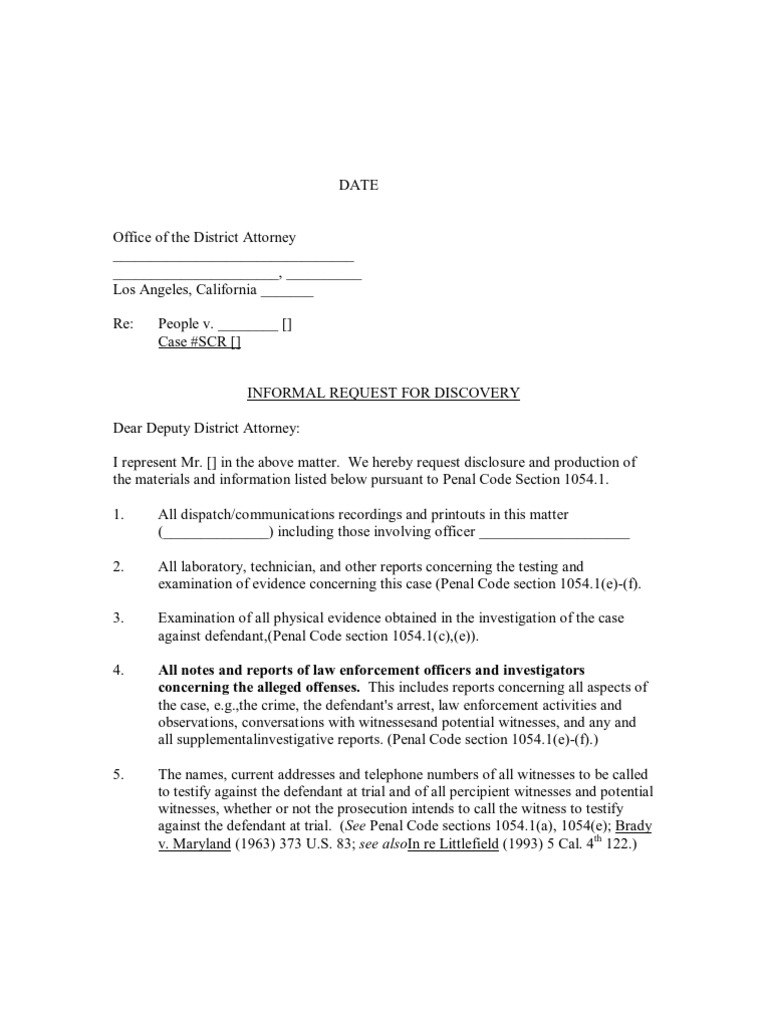 Discovery Request Sample Letter PDF Discovery (Law) Witness