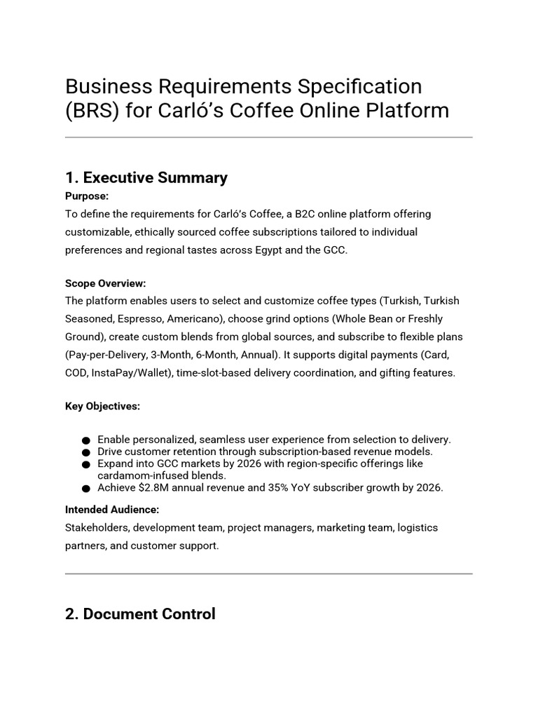 Business Requirements Specification (BRS) for Carló s Coffee Online