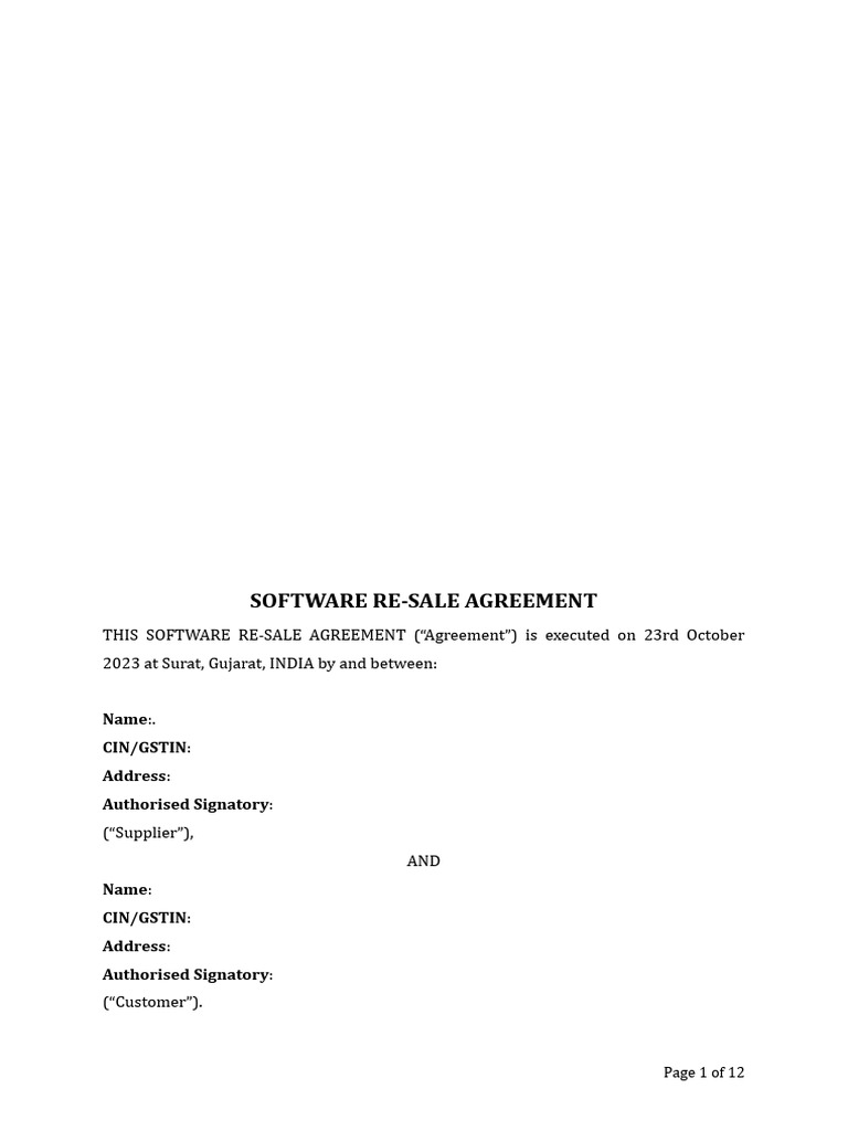 Software Resale Agreement Blank PDF Non Disclosure Agreement
