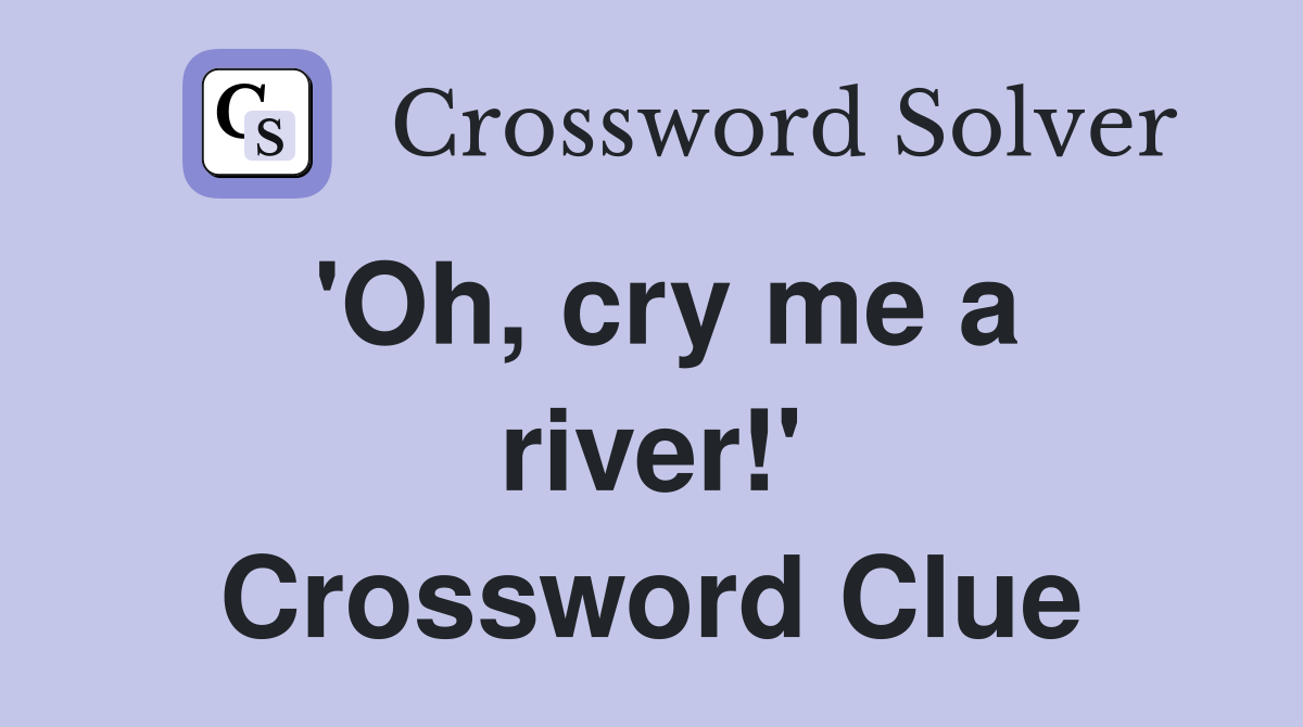 #39 Oh cry me a river #39 Crossword Clue Answers Crossword Solver