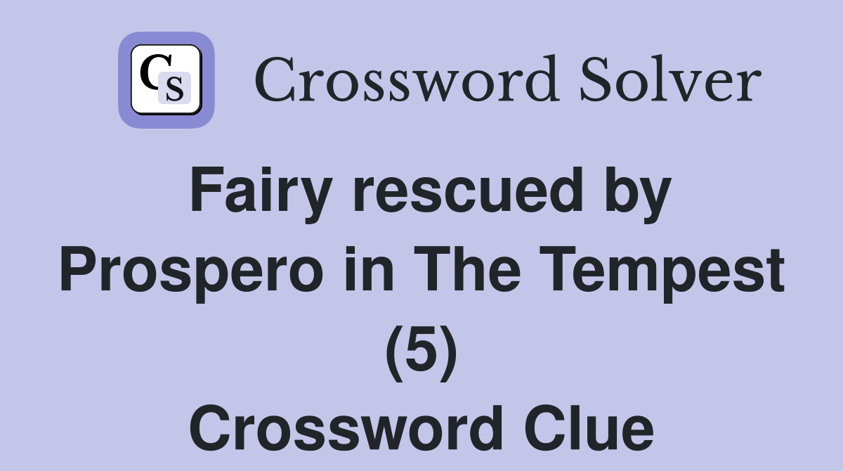 Fairy rescued by Prospero in The Tempest (5) Crossword Clue Answers