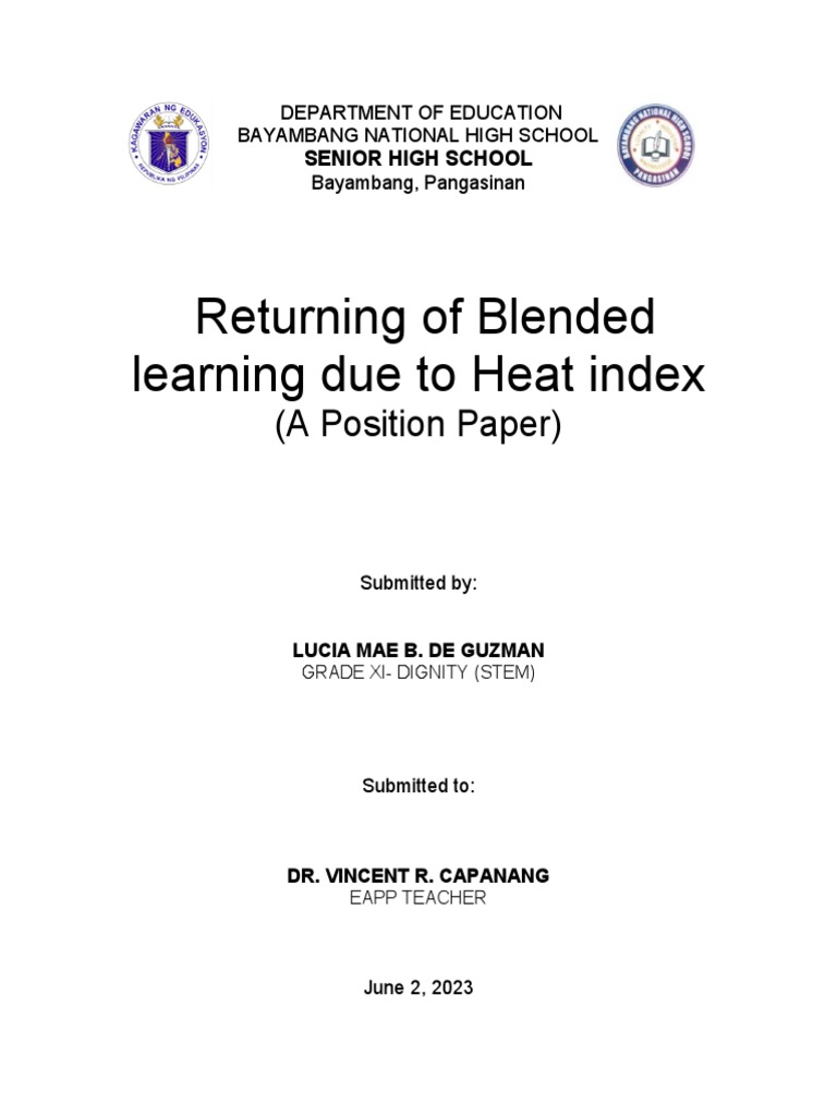 Position Paper Sample Format PDF Teachers Learning