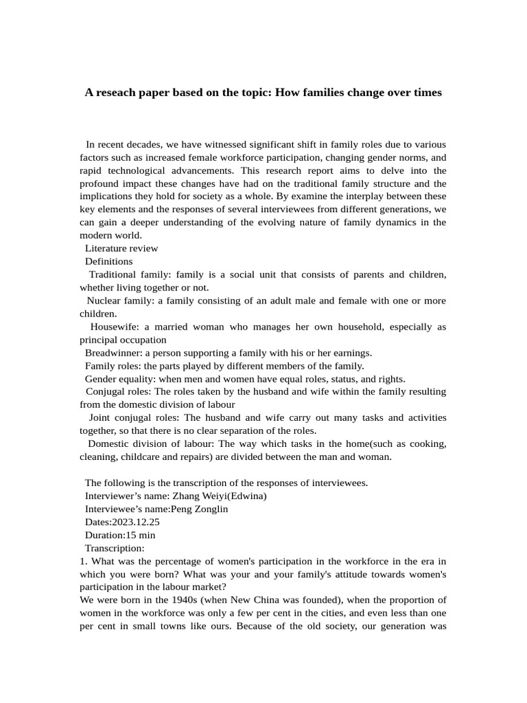 A reseach paper PDF Gender Role Family