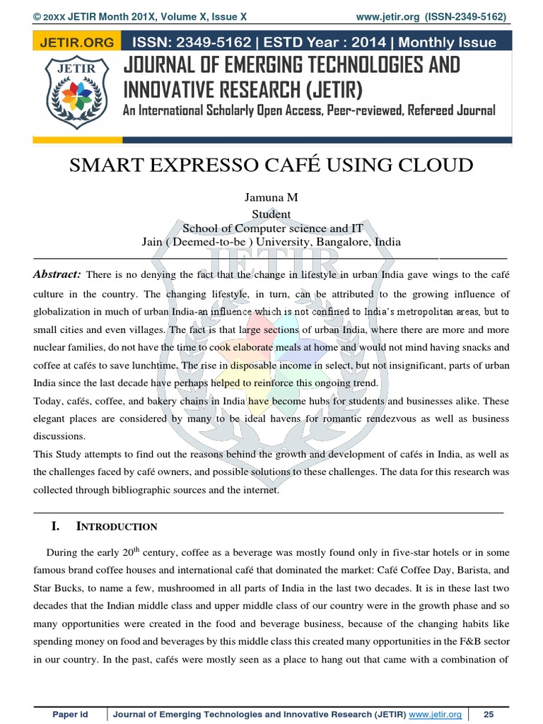 Cafe RESEACH PAPER JAMUNA M 21MCAR0147 PDF Coffeehouse Employment