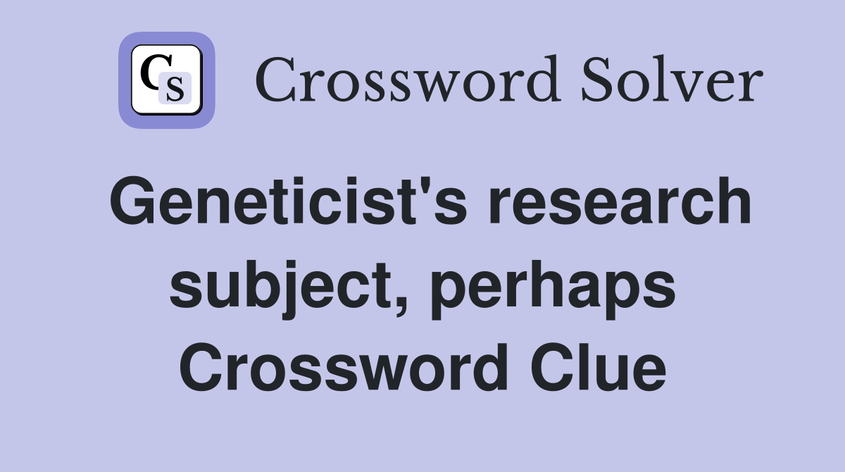 Geneticist #39 s research subject perhaps Crossword Clue Answers