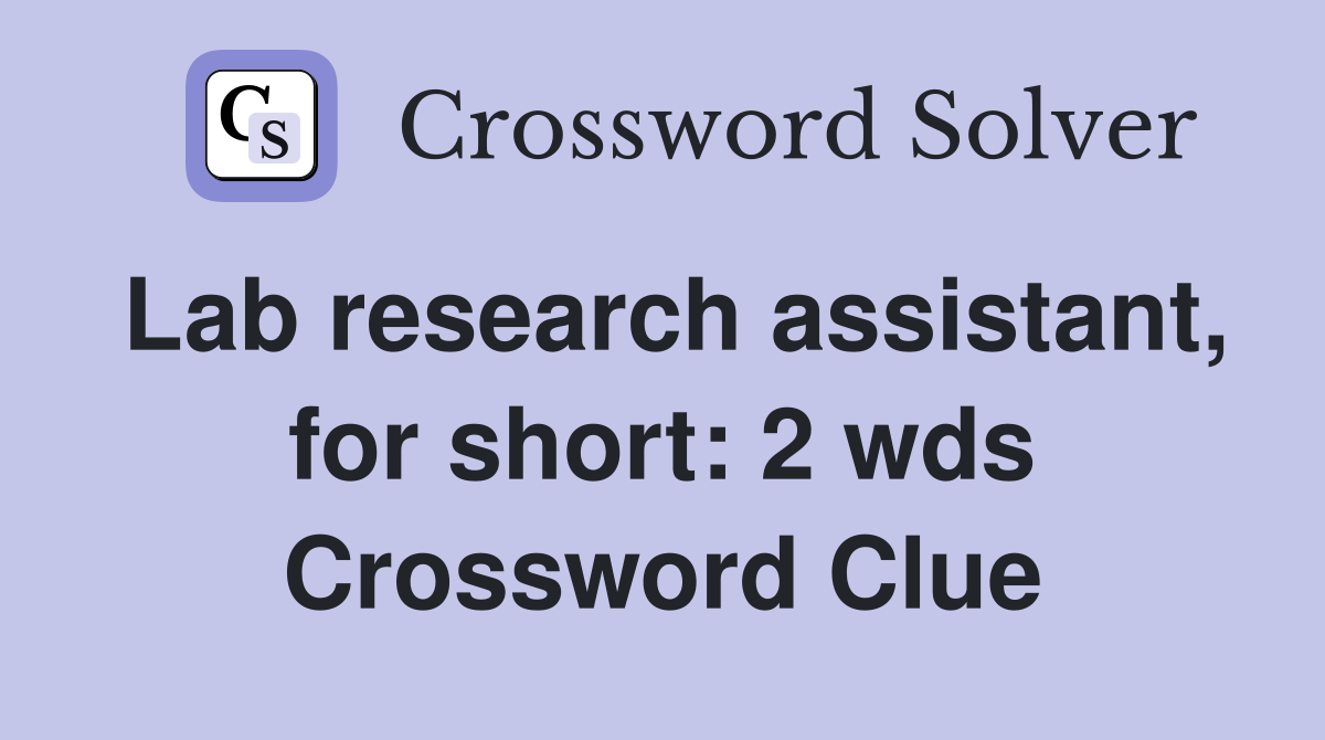 Lab research assistant for short: 2 wds Crossword Clue Answers