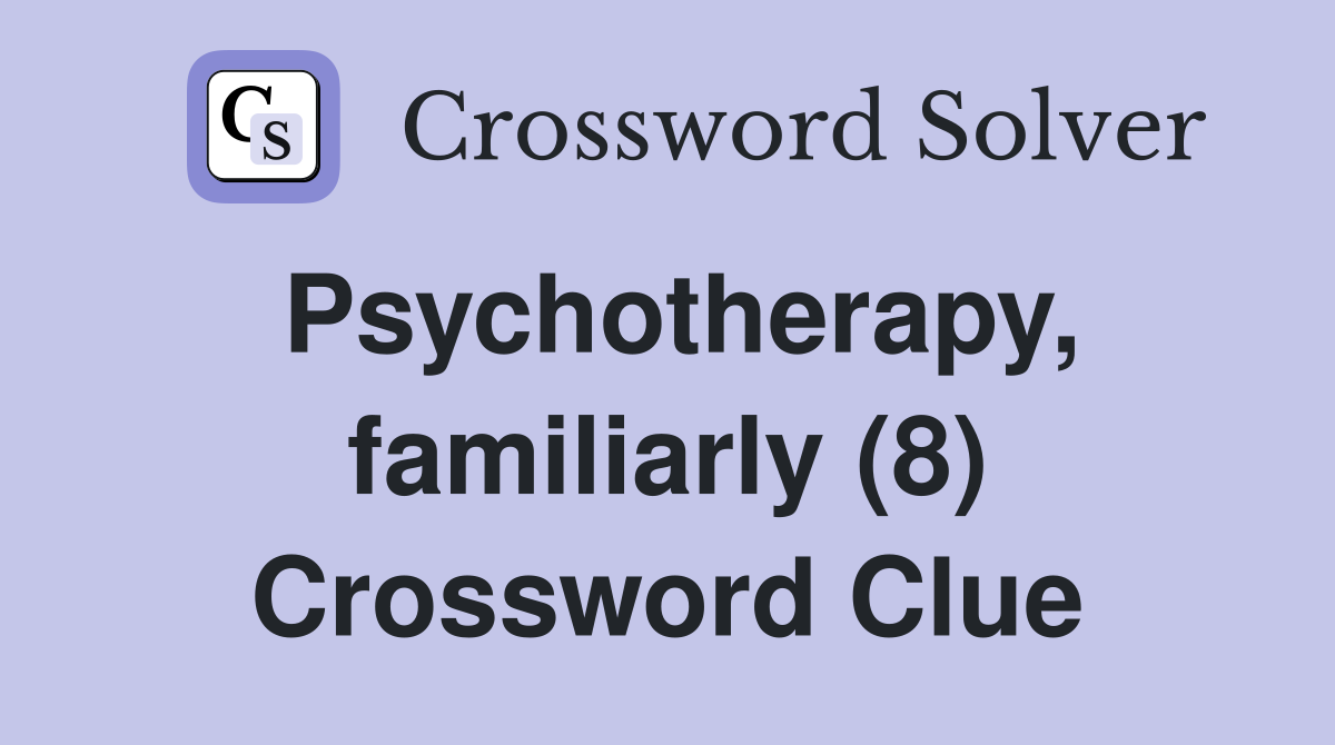 Psychotherapy familiarly (8) Crossword Clue Answers Crossword Solver