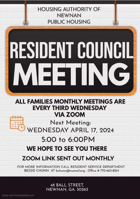 Resident Council Meeting 4/17 (04/10/2024) News Housing Authority