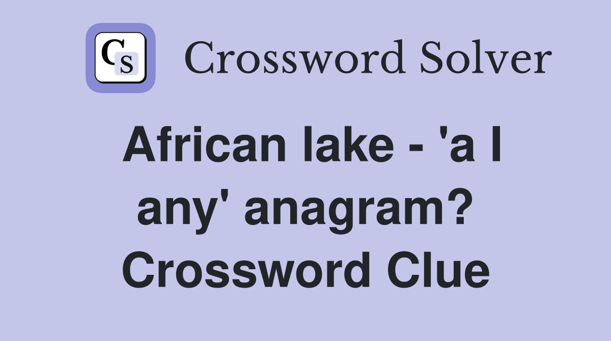 African lake #39 a I any #39 anagram? Crossword Clue Answers Crossword