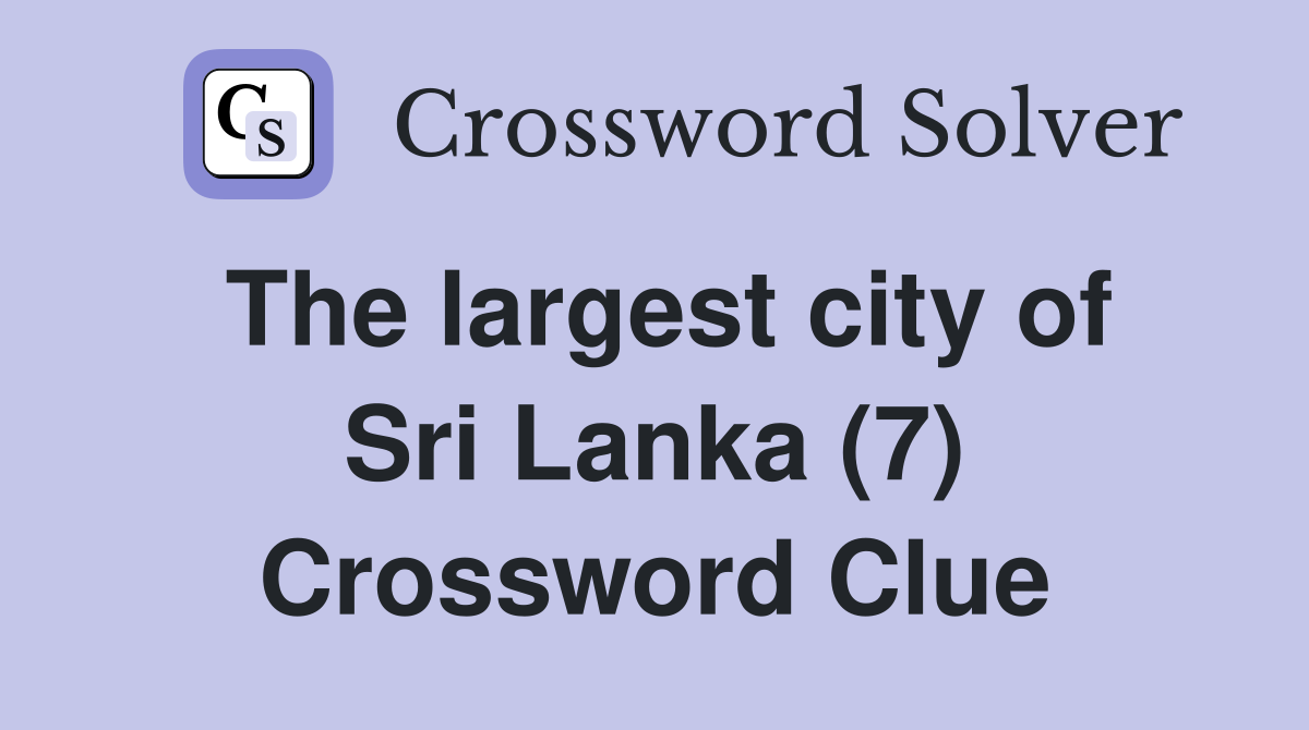 The largest city of Sri Lanka (7) Crossword Clue Answers Crossword