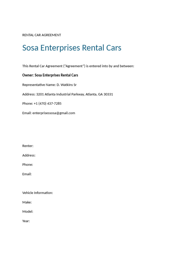 Rental Car Agreement PDF