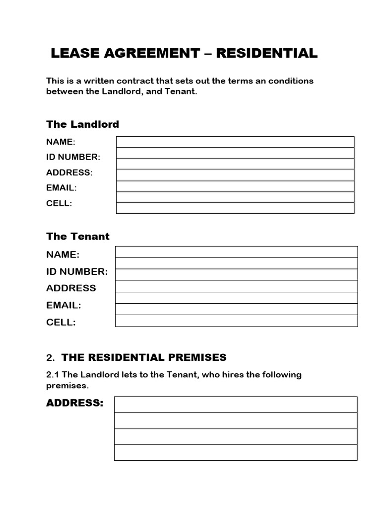 Residential Lease Agreement Free Printable