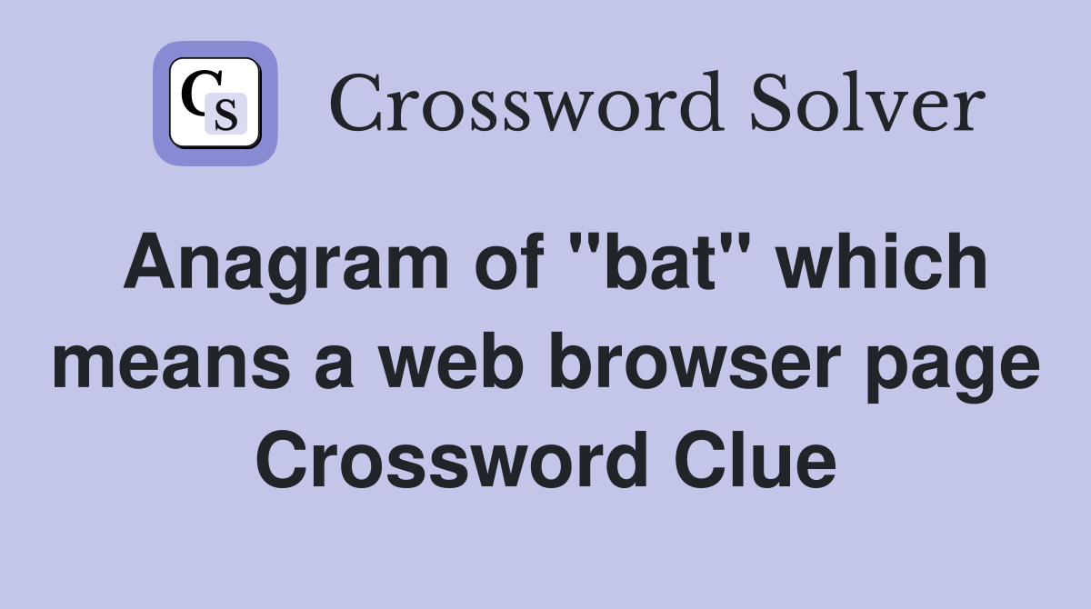 Anagram of quot bat quot which means a web browser page Crossword Clue