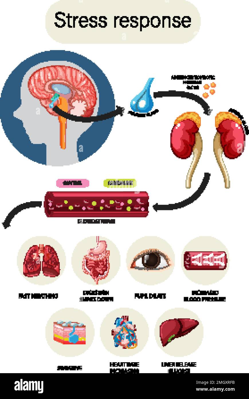 Stress response anatomical diagram with inner organs illustration Stock