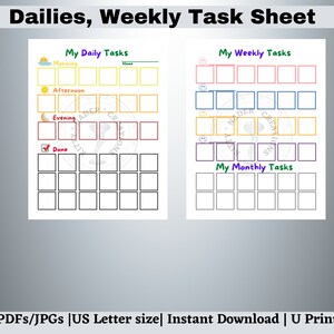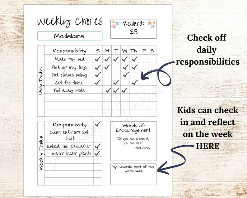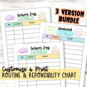Chore Chart for Kids Editable Printable Daily Weekly Responsibility
