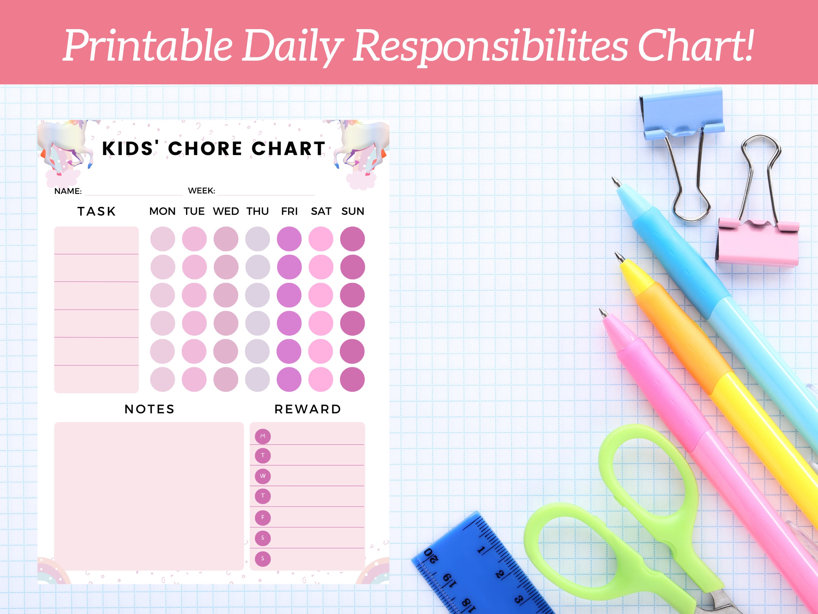 Printable Unicorn Chore Chart for Kids Responsibility List Daily
