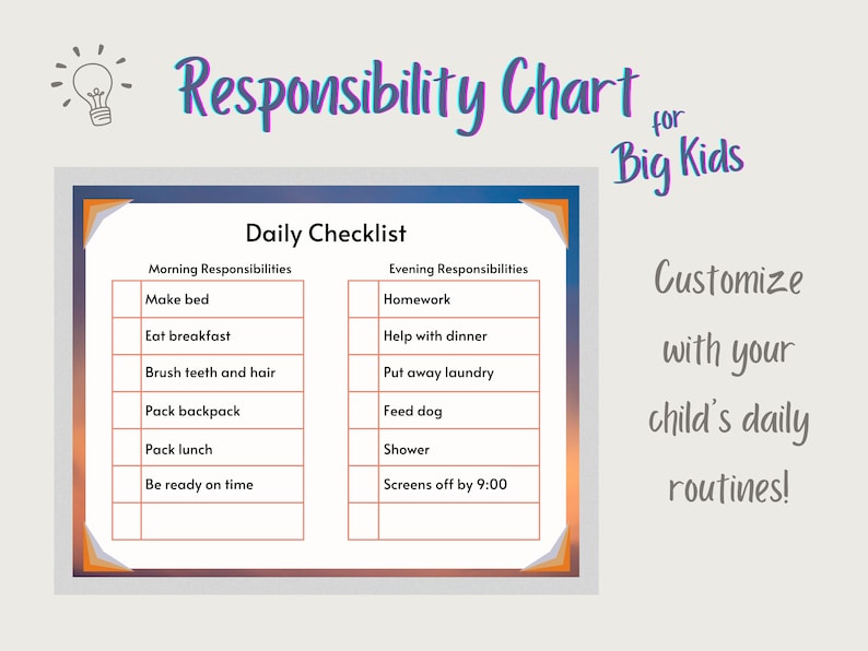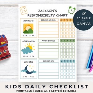 Kids Daily Responsibility Chart Editable Kids Responsibility List