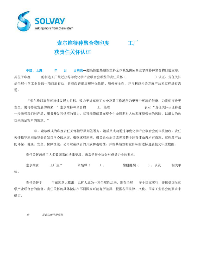 Solvay SPP Panoli Site Receives Responsible Care Certification EN PDF