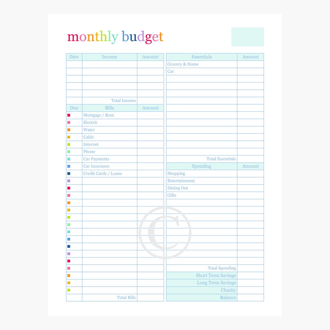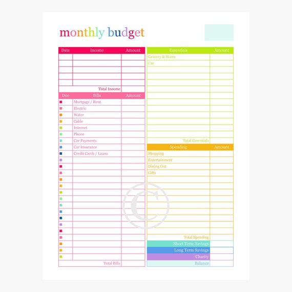 MONTHLY BUDGET Budget Planner Printable Pages Happy Financial Bill