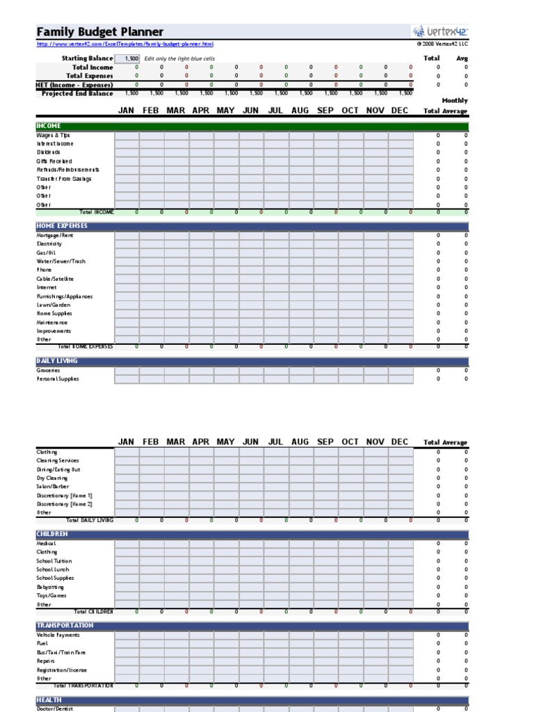 Customizable Family Budget Template