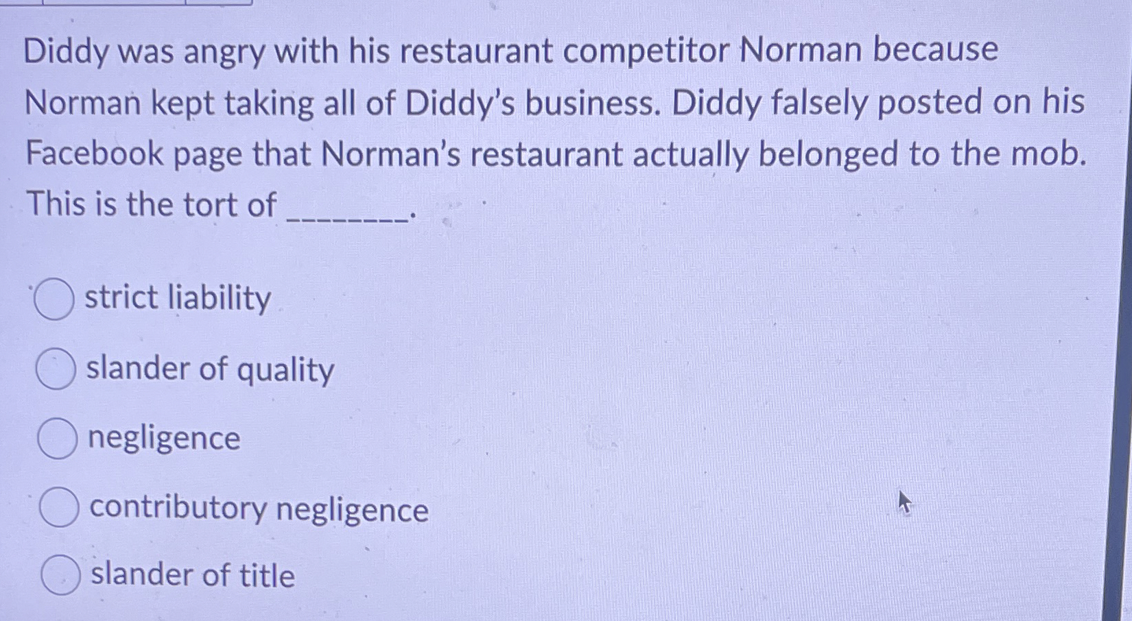 Solved Diddy was angry with his restaurant competitor Norman Chegg com