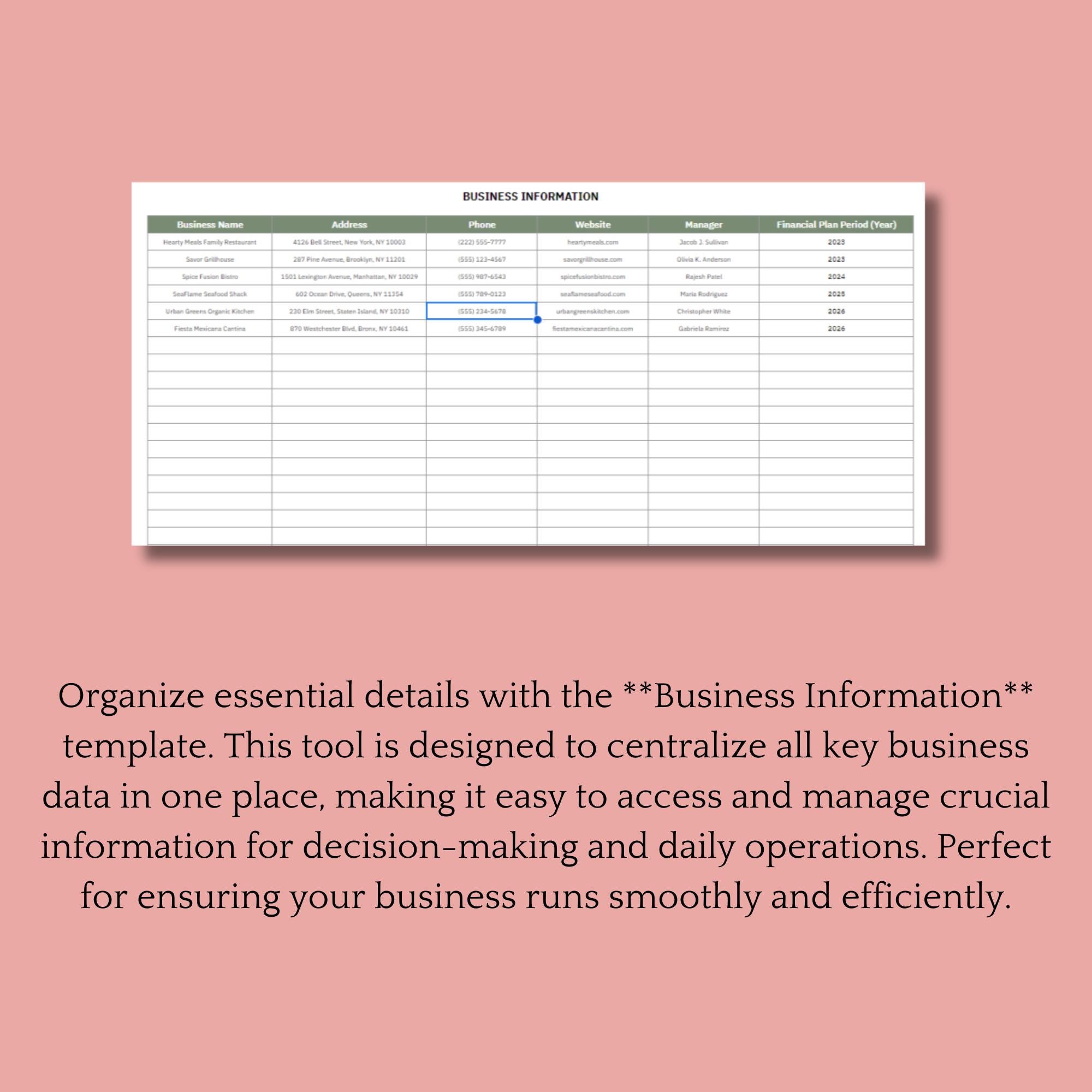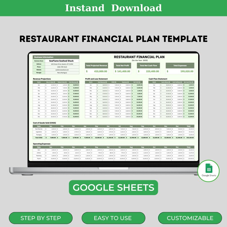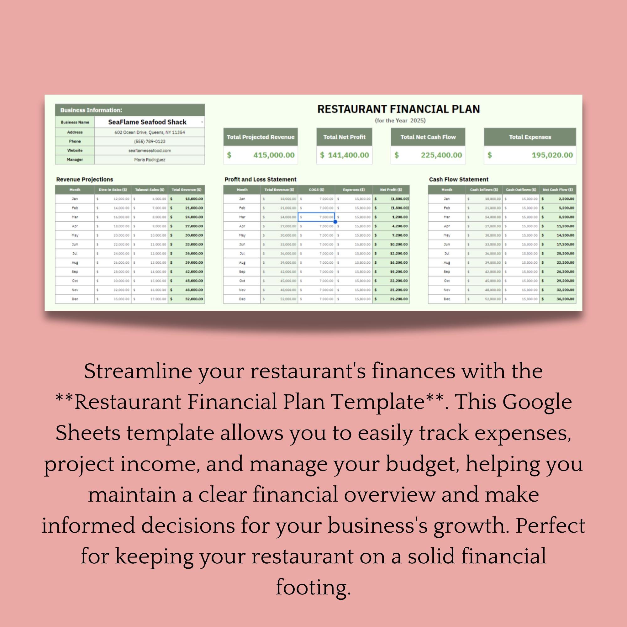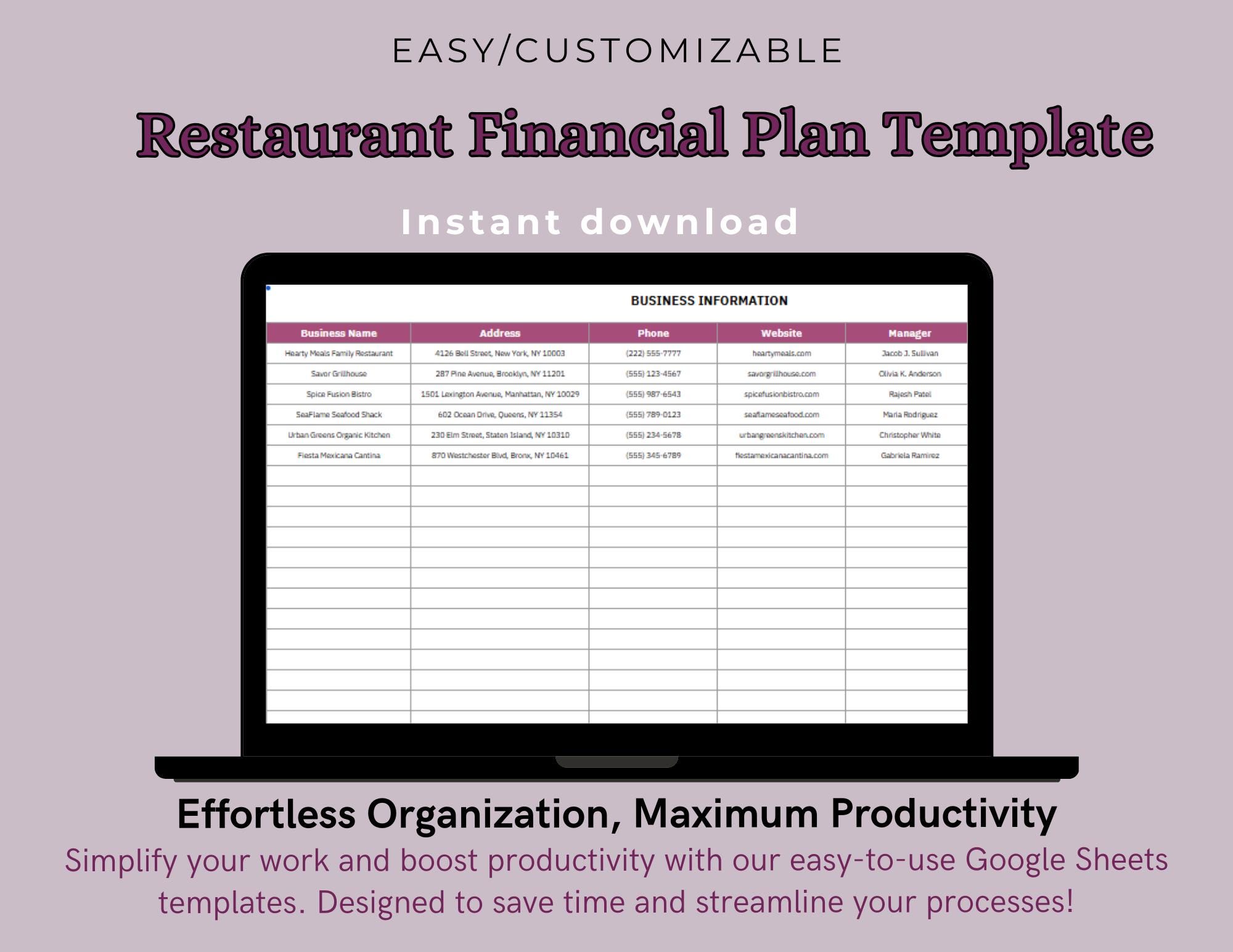 Restaurant Financial Plan Template for Google Sheets Financial Plan