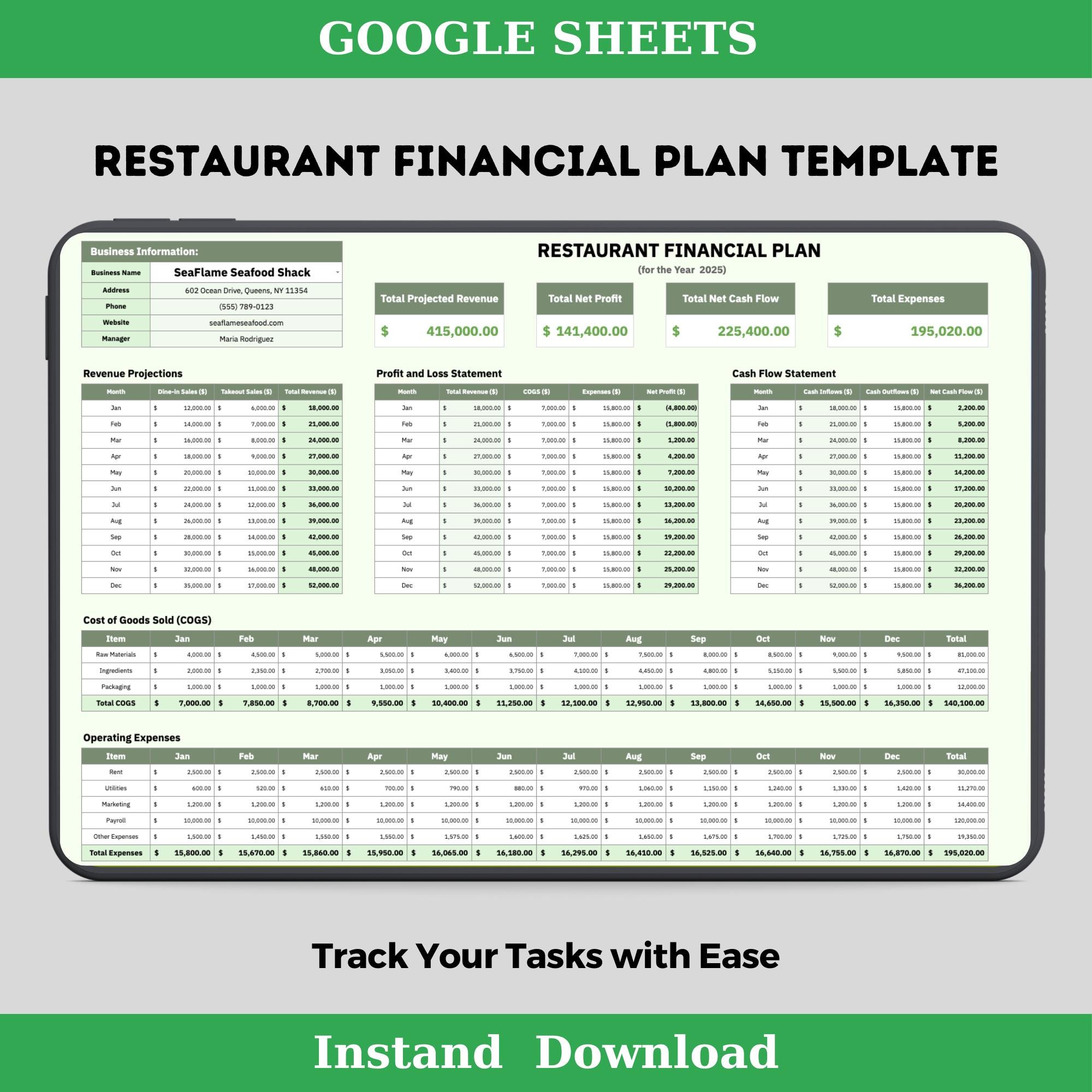 Restaurant Financial Plan Template Google Sheets Budget Tool