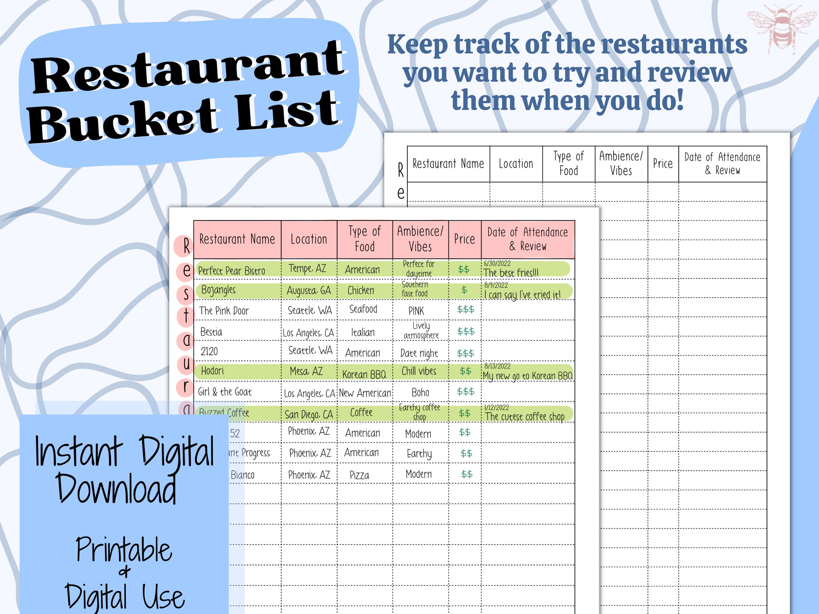 Restaurant Details Log Book: Restaurant Journal to Recording Restaurant