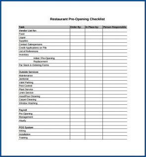 √ Free Printable Restaurant Checklist Template Checklist Templates