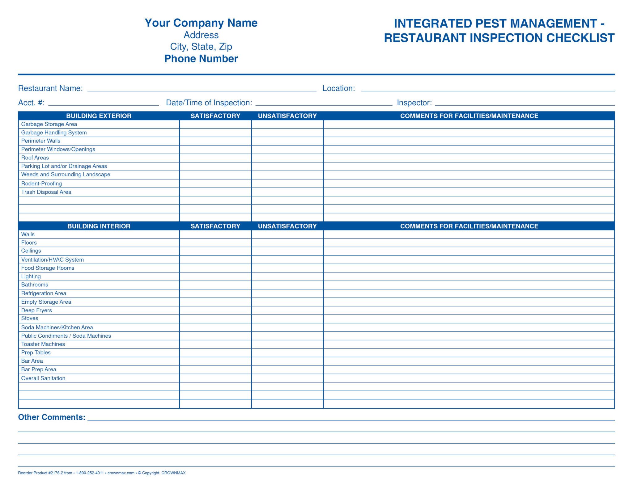 2176 Pest Management Restaurant Inspection Checklist Crownmax com