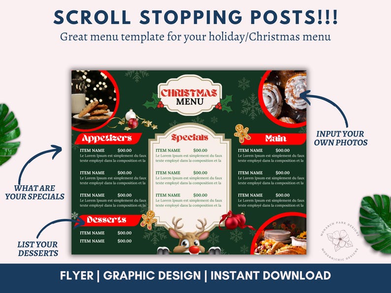 Editable Christmas Menu Template Holiday Catering Restaurant Price