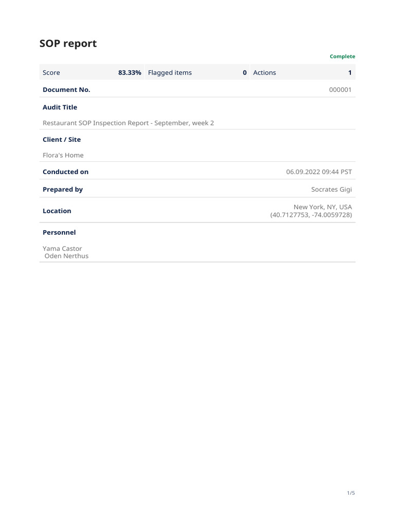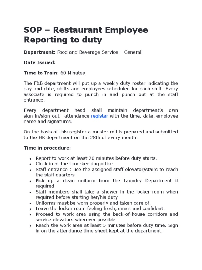 Restaurant Sop Template