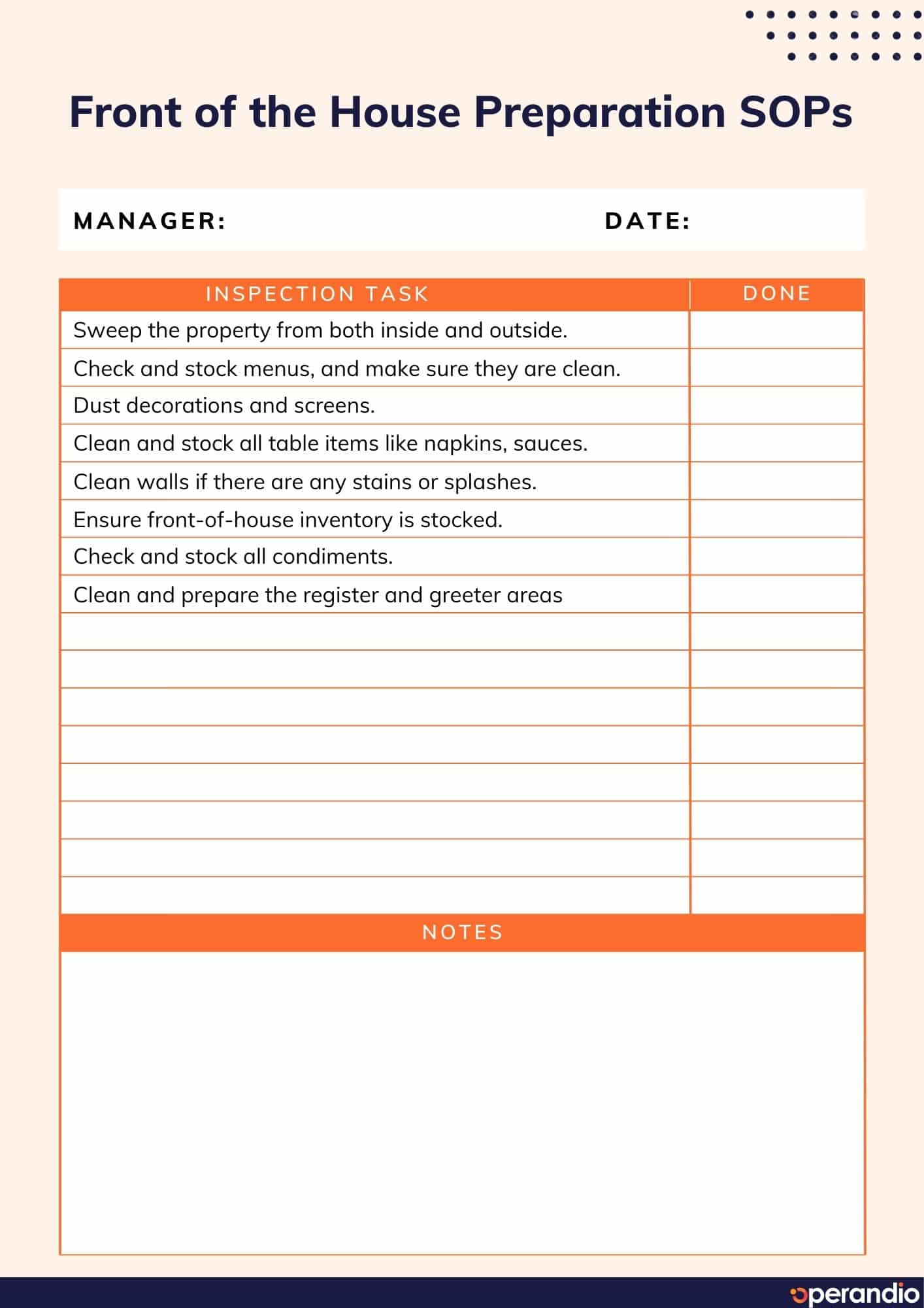 Restaurant Standard Operating Procedures Template