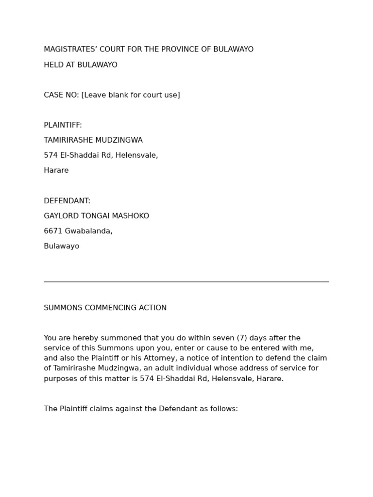 Compel Draft Order Case No: 41136/ in Magistrates Court Studocu