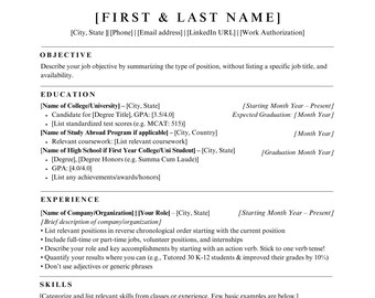 Engineering Student Resume Checklist Template