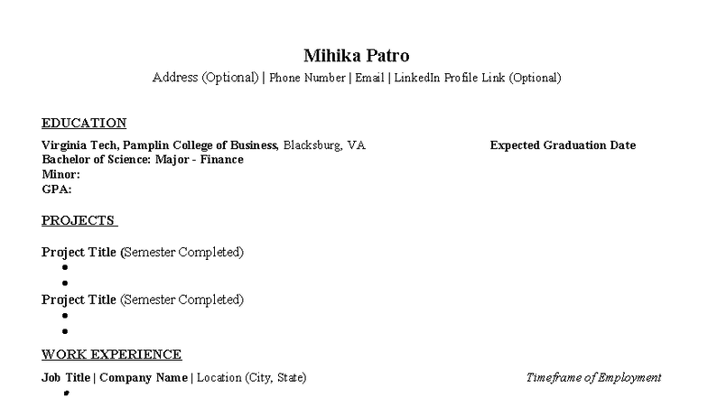 Student Resume Template Mihika Patro Mihika Patro Address (Optional