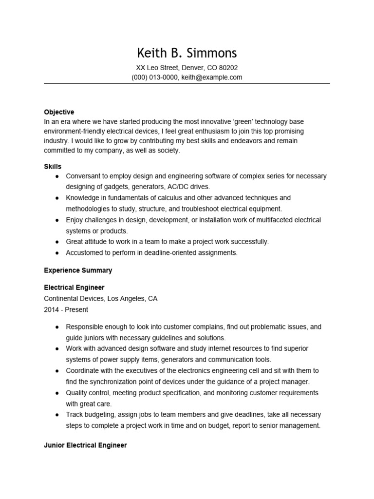 Electrical Engineering Resume Template