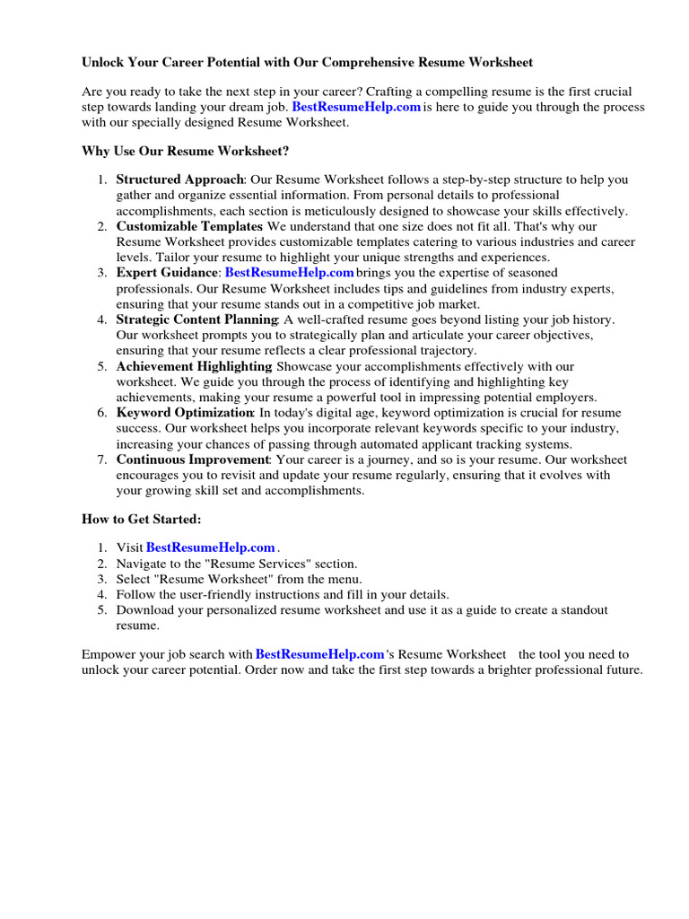 Printable Resume Worksheet Showcase your potential to recruiters and