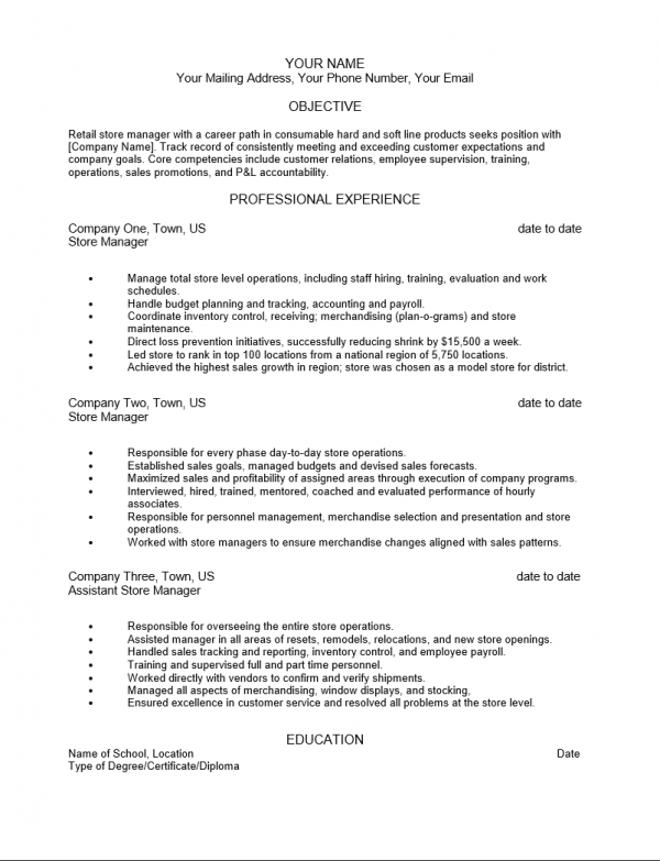 Retail Store Manager Resume Templates at allbusinesstemplates com