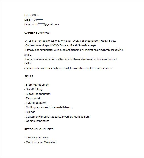 FREE 8 Sample Retail Management Resume Templates in MS Word PDF