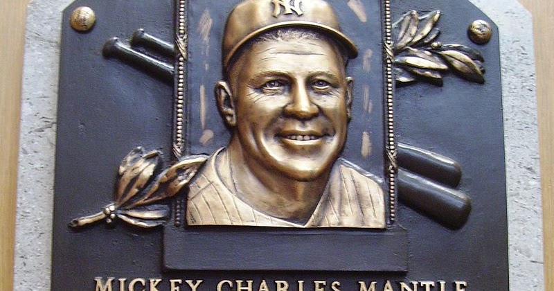 Yankee slugger Mickey Mantle his face contorted with pain swings