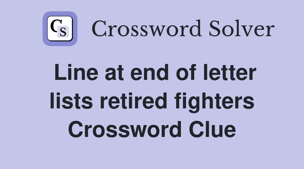 Line at end of letter lists retired fighters Crossword Clue Answers