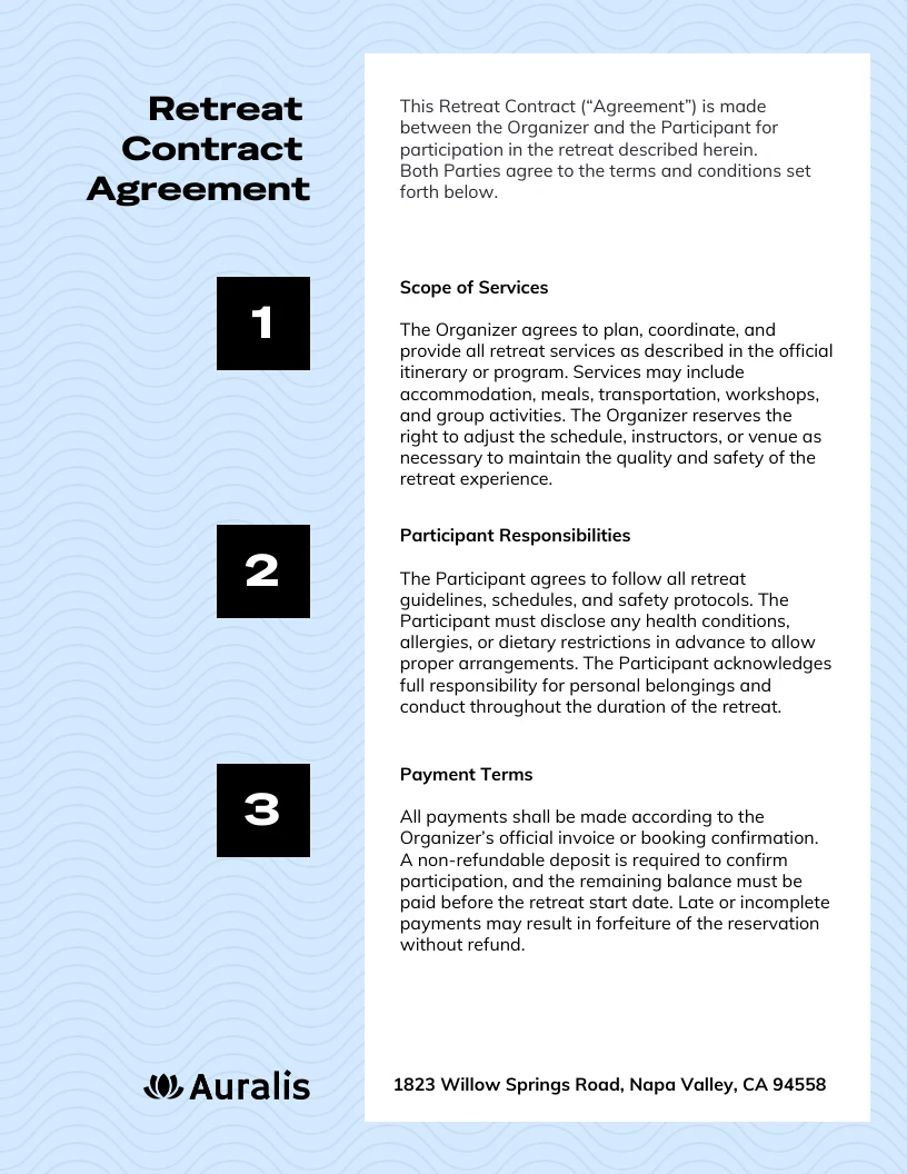 Retreat Contract Template Customizable Agreement for Retreat Organizers