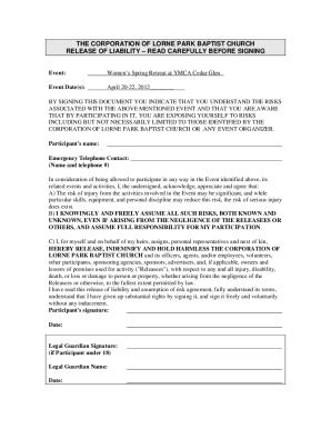 Retreat Waiver Miracle Camp And Retreat Center Fill and Sign