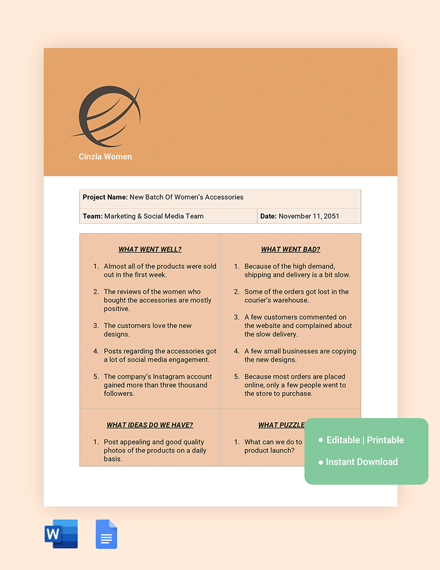 Retrospective Report Template in Word Google Docs Download
