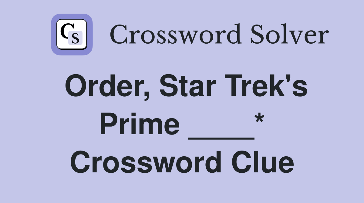 Order Star Trek #39 s Prime * Crossword Clue Answers Crossword Solver