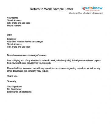 Return To Work Letter Template